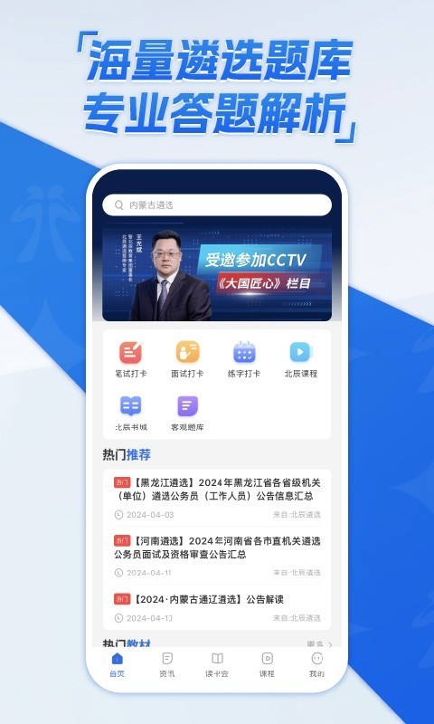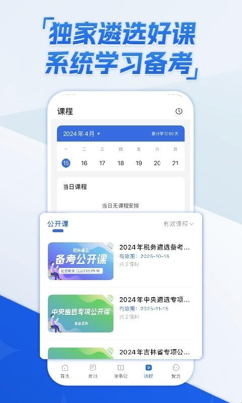 2、实时资讯与课程:提供实时更新的遴选考试资讯,搭配系统化备考课程,让考生既掌握最新考试动态,又能循序渐进学习考试知识,构建完整知识体系。