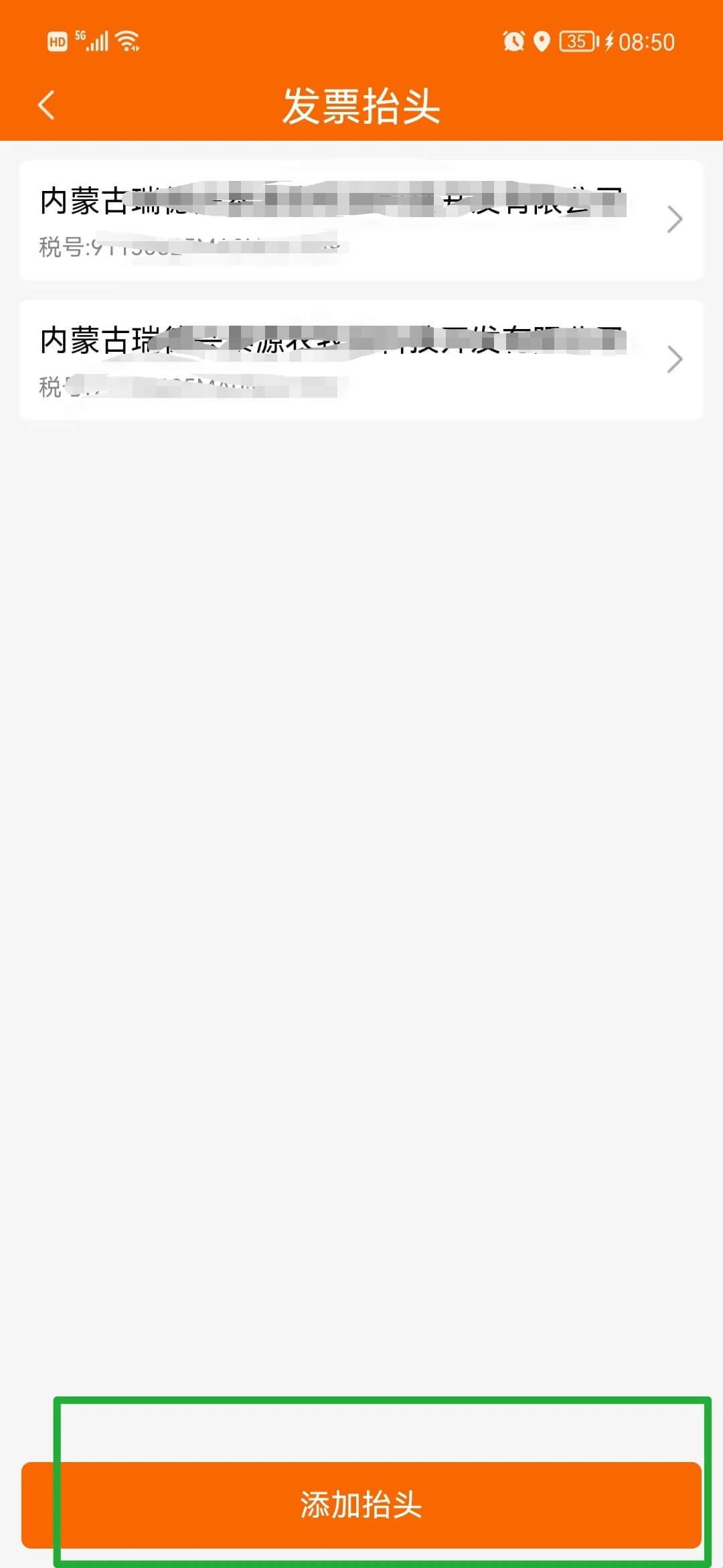 第四步:点击发票抬头“添加抬头”开发票单位信息;