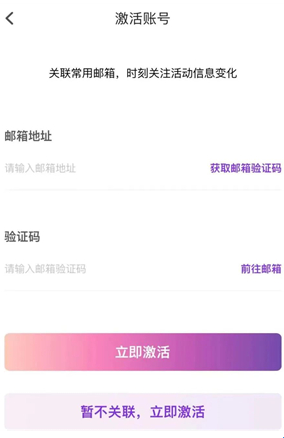 5、绑定邮箱,点击立即激活也可点击暂不关联,立即激活。