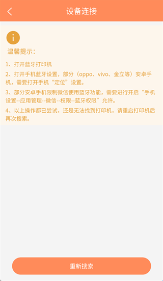 3、在搜索列表中选择打印机。 【链接前请确保手机已打开蓝牙和位置权限】