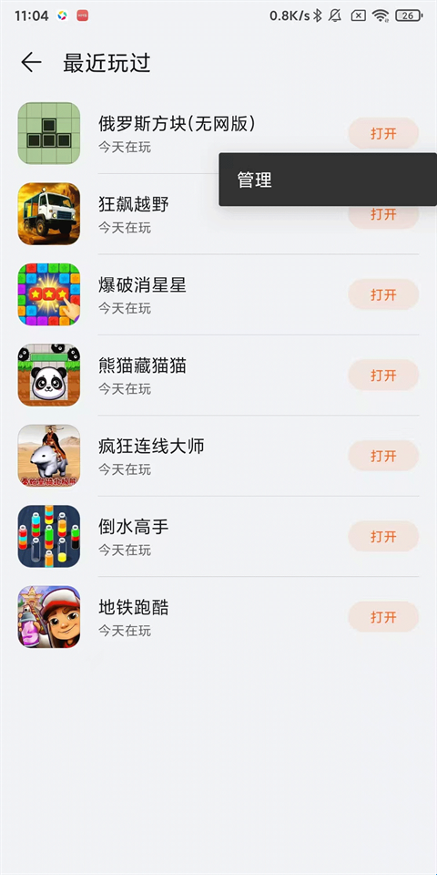 2、提供最近记录:记录最近玩过的小游戏,随时随地回味精彩游戏。