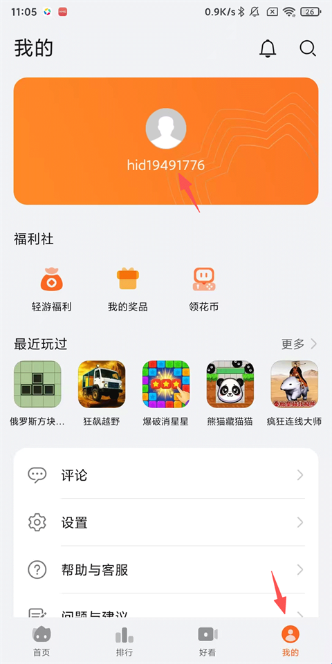 1、启动花瓣轻游 APP,点击进入 “我的”页面。