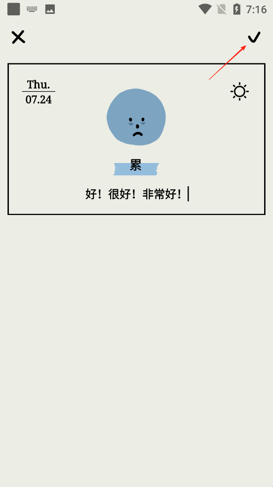 3、填写烦心事或者开心的事,点击【√】