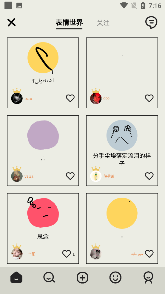 5、这里可以看到其他人发布的表情世界,还能搜索标签