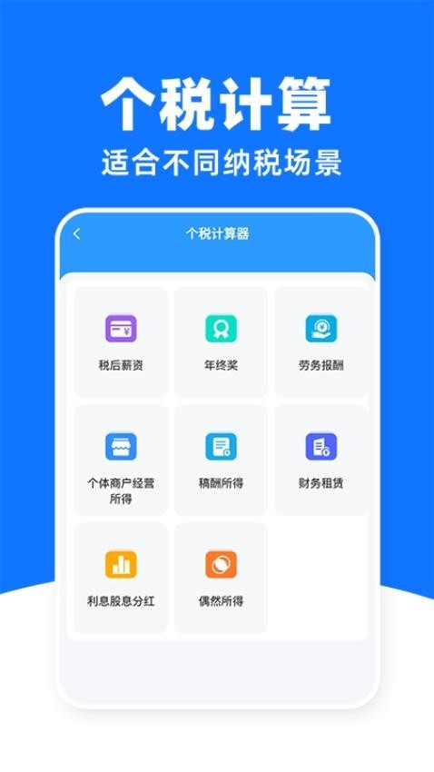 1、税务信息快速查询:个税计算,用户只需输入月收入、各项扣除(如五险一金、专项附加扣除等)后,应用将依据新税法自动计算出应纳税额和速算扣除数,确保您的个税计算准确无误。