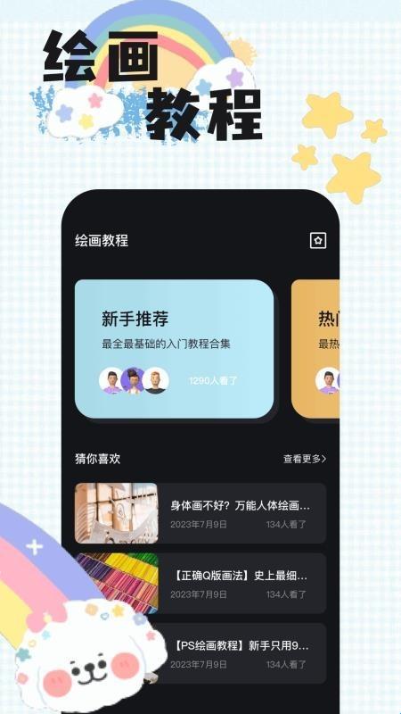 4、绘画教程:查找软件中推送的绘画教程,用户能够查看教程学习绘制精美图案的技巧。