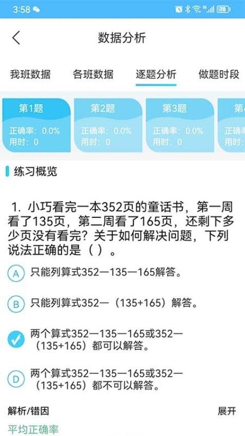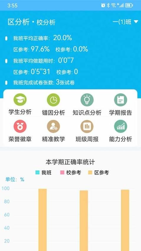 3、班级筛选:使用软件就能够筛选不同班级学生的作业完成情况来掌握更多数据。