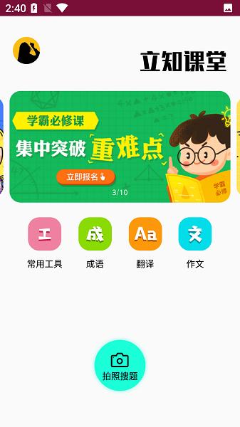 1、家庭作业辅导:家长可以借助立知课堂的拍照搜题功能,快速解答孩子的作业问题。