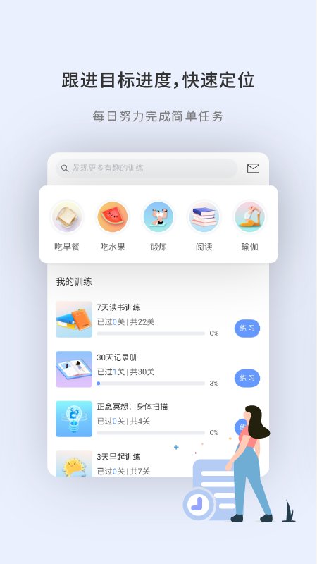 -专注训练,不干扰,界面简洁,操作简单,一键打卡;