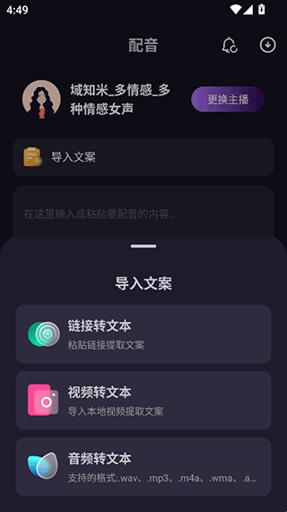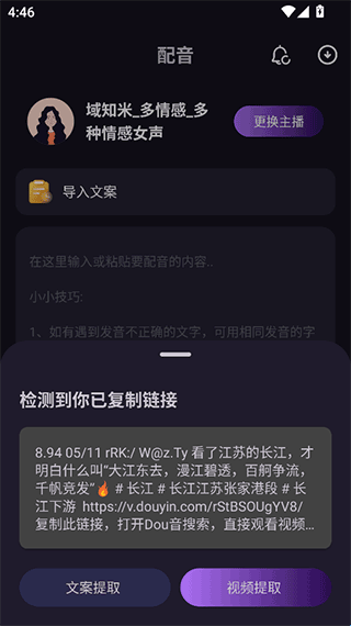 3、关键是这个软件现在还可以直接导入链接中的解析出来的文案进行免费配音。