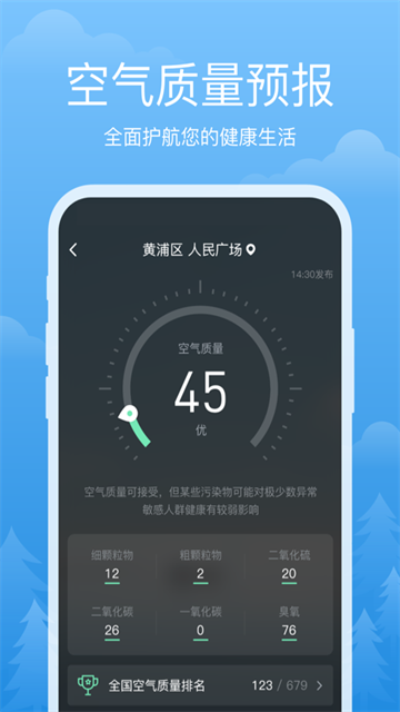 祥瑞天气app实时监控空气质量,从容面对雾霾污染,呵护您的健康。