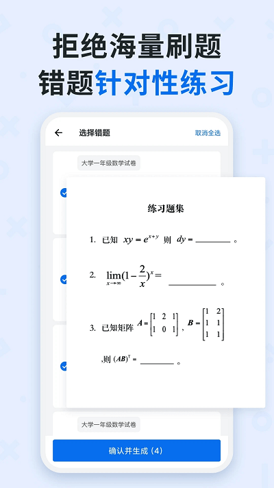 3、提供个性化组卷功能,基于用户错题记录与学习进度智能生成针对性练习试卷。