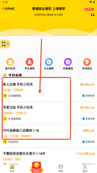 2、进入首页可以看到海量兼职。