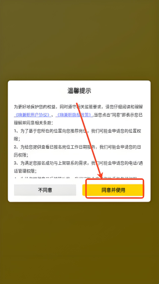 1、下载安装APP后打开软件,提示同意与否,点击同意。