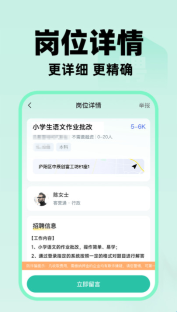 3、支持在家做兼职,部分岗位无需到固定地点办公,为用户节省通勤时间,增加兼职的便利性。