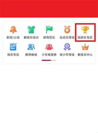 1、体教联盟app页面,点击选择国家队专区项目。
