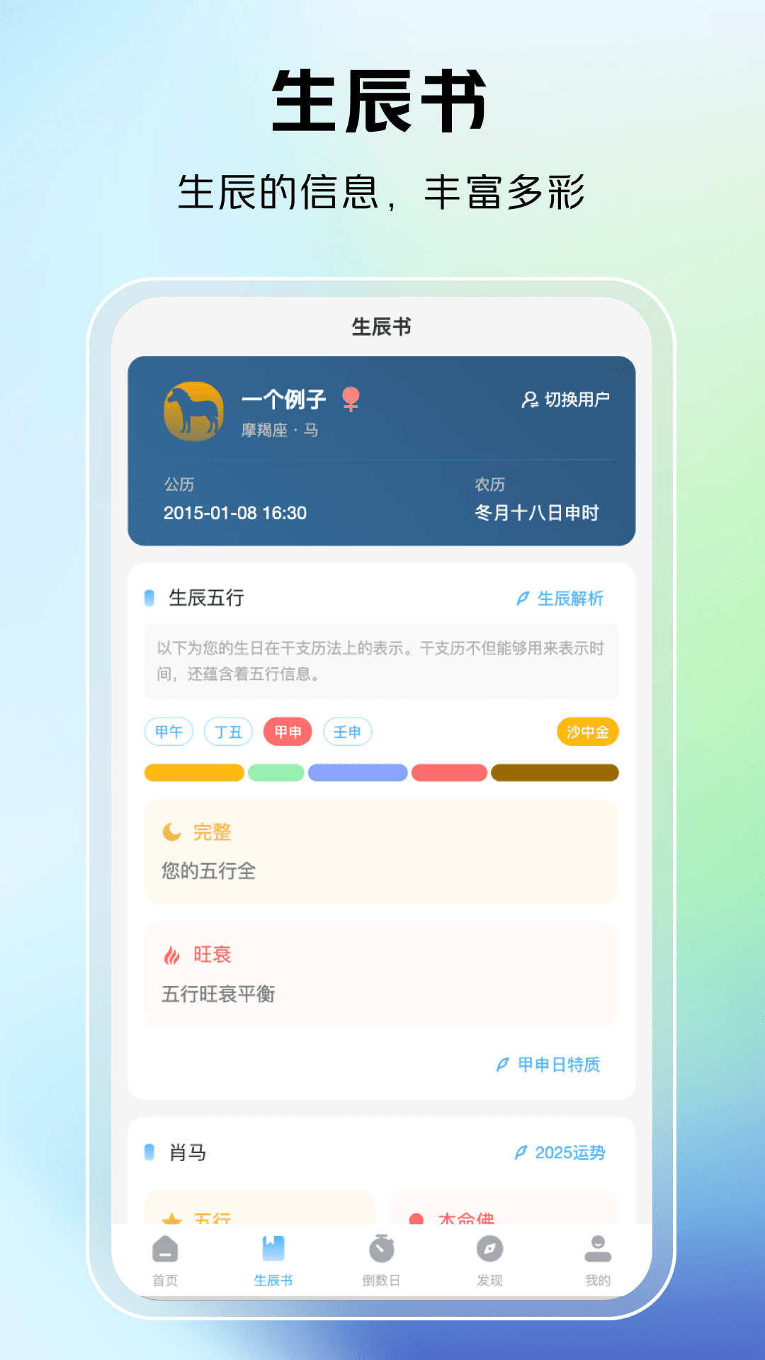 6、生辰书:这款软件里面还为用户们提供了生辰书,让用户轻松了解生辰五行。