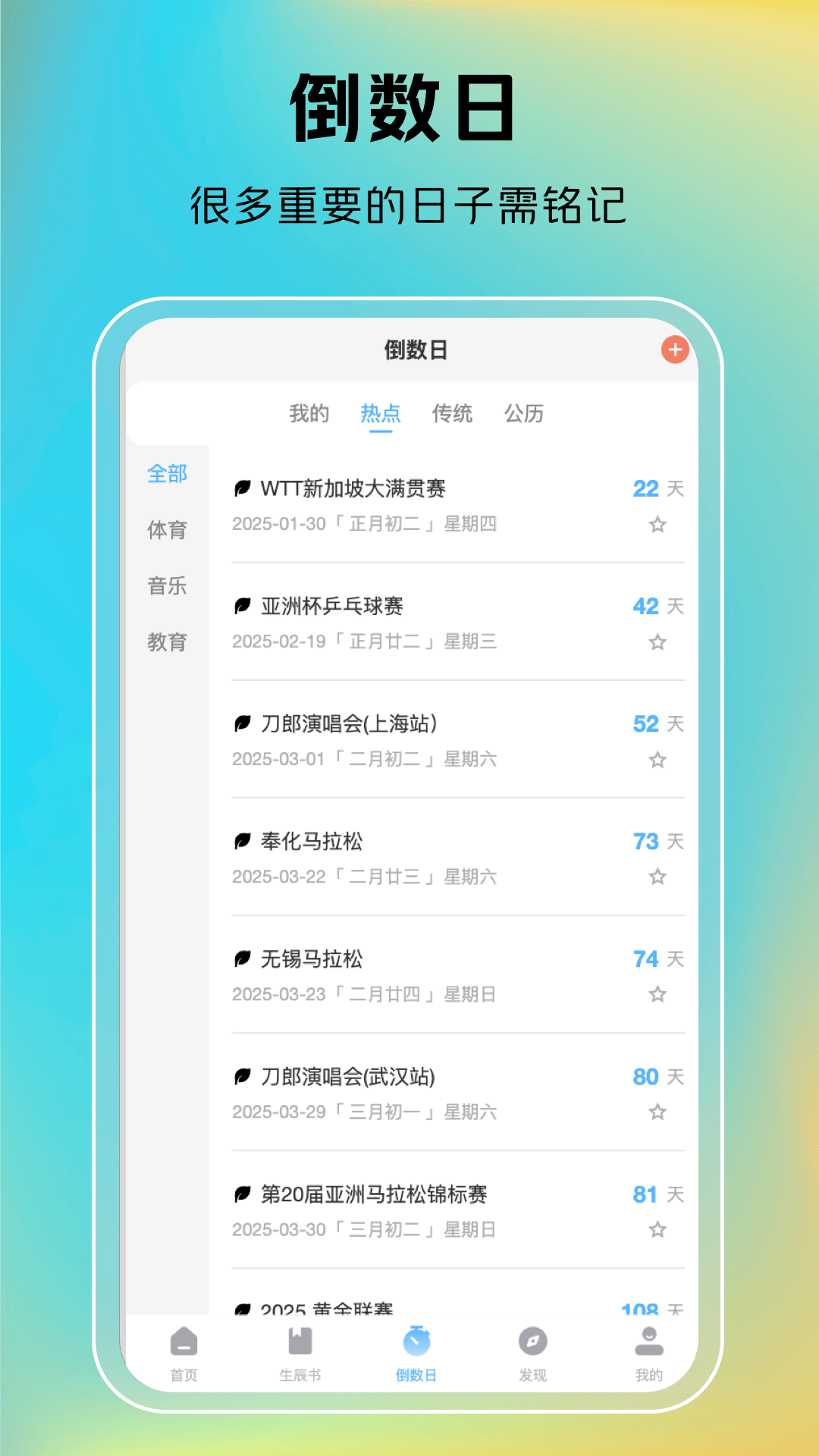 5、倒数日:具有倒数日功能,用户可以在这款软件上设置重要日期的倒数日。