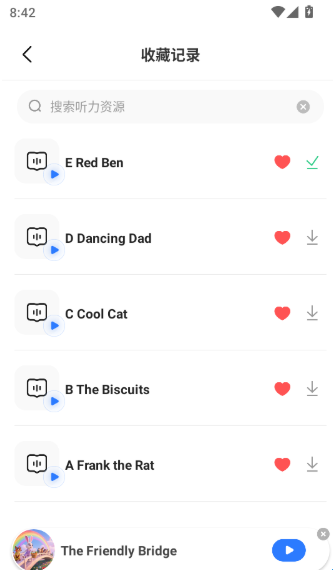 4、收藏资源:支持将听力资源进行一键收藏,方便用户收藏保存常用的资源进行学习。