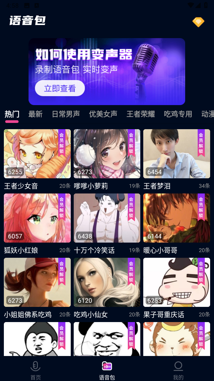 2、随时都能到这来选择,多个热门的语音包在这里随时可以选择