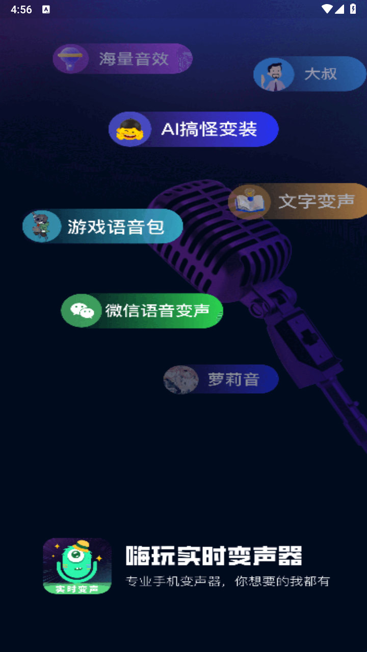 嗨玩实时变声器是一款非常有趣的变声软件,这款软件内拥有超多的音色可以选择,无论是男声、女声还是御姐、萝莉等等全都有,并且软件适用于多种场景,无论是游戏开黑还是好友聊天都可以用的上,感兴趣的小伙伴儿赶紧下载体验吧。