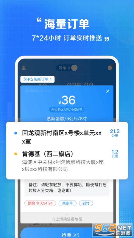 5、24小时订单推送服务,订单预约,夜间单补助;