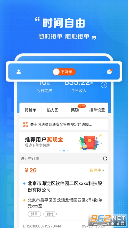 骑手可以根据自己的时间和喜好,随时上线接单或下线休息。这种灵活的工作方式,让骑手能够更好地平衡工作和生活。想要成为骑手的朋友需要注册账号,然后按照上面的方法去进行接单赚钱。