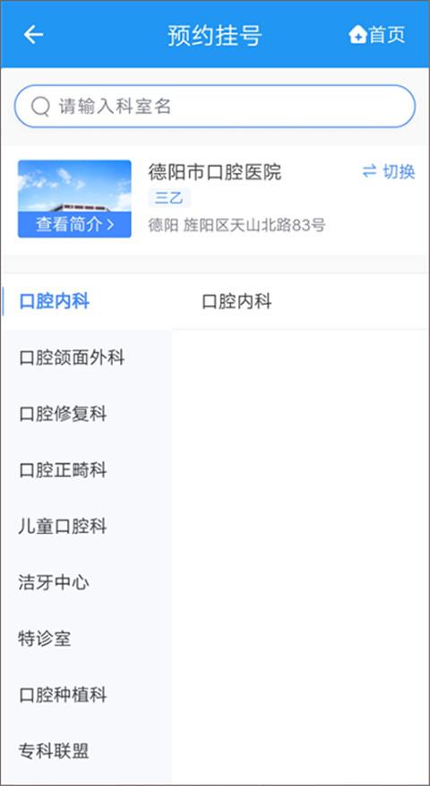 3、查找到该医院后,点击进入其主页,选择挂号的科室。