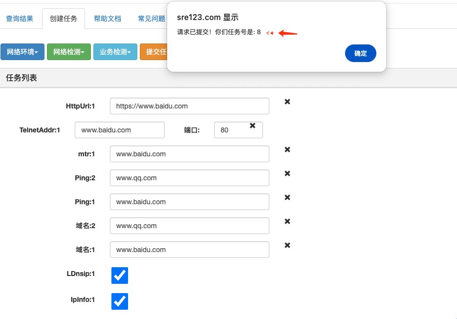 4、查看结果,打开URL查看结果,或者在任务创建页面查询:输入:111111。
