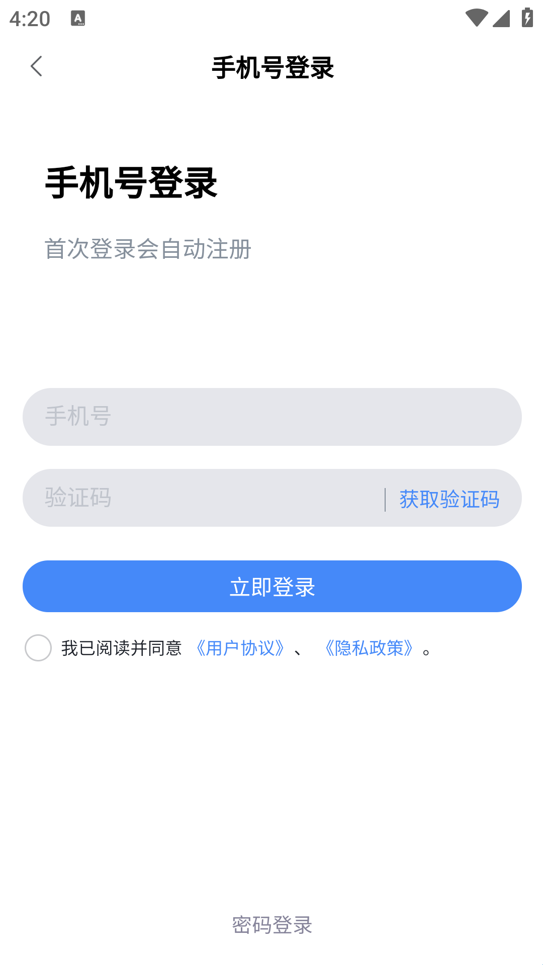 1、下载安装软件并打开,点击同意,进入软件登录界面。