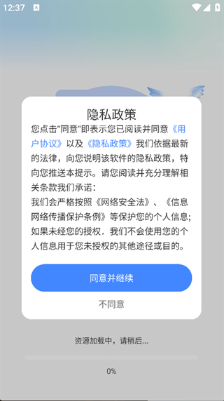 1、下载并安装APP,点击‘同意并继续’,即可进入主页面;