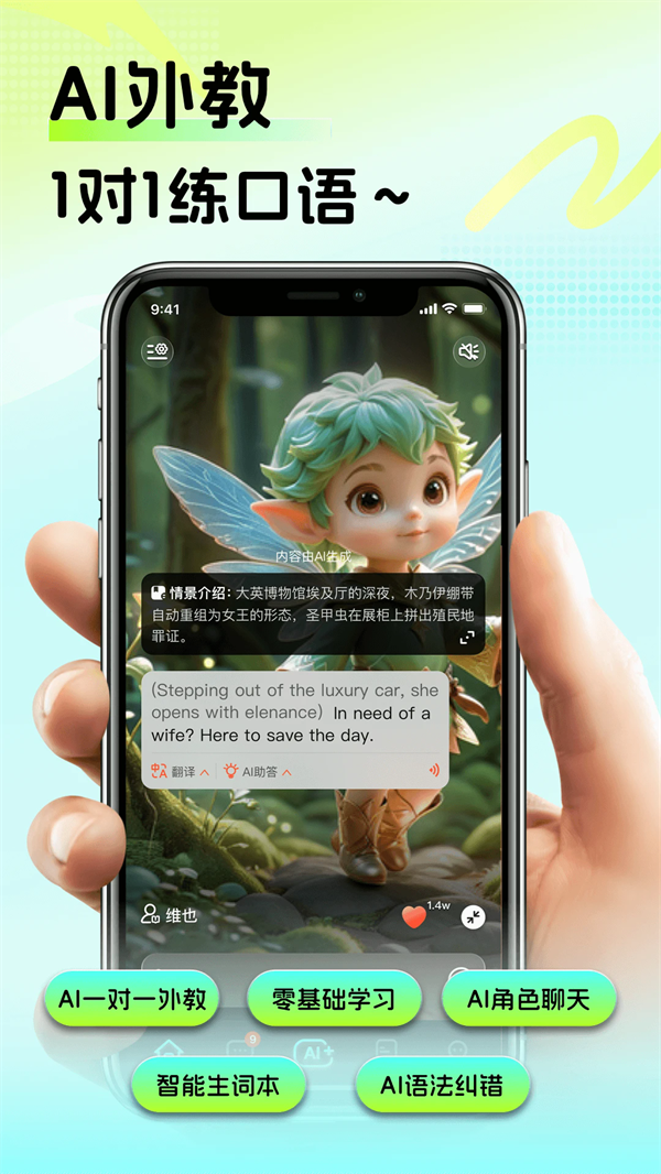 1、AI对话:这款软件可以随时陪你进行AI对话,让你在对话中锻炼口语。