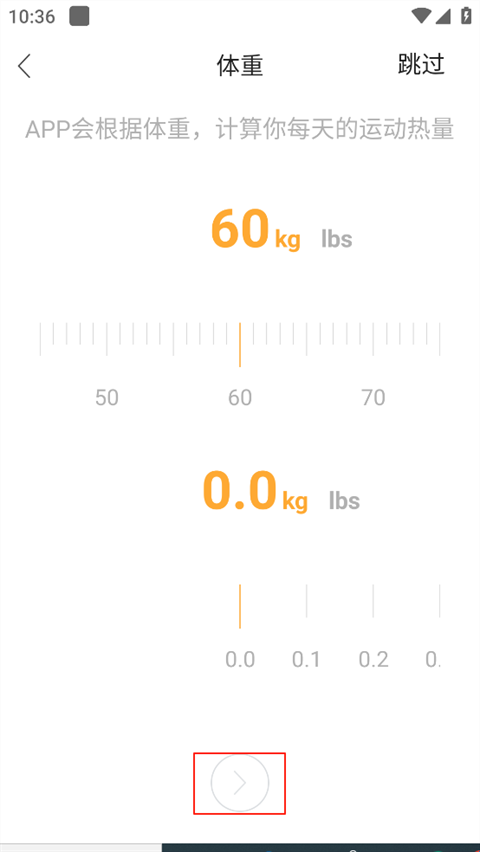 2、同理,选择体重,继续下一步。