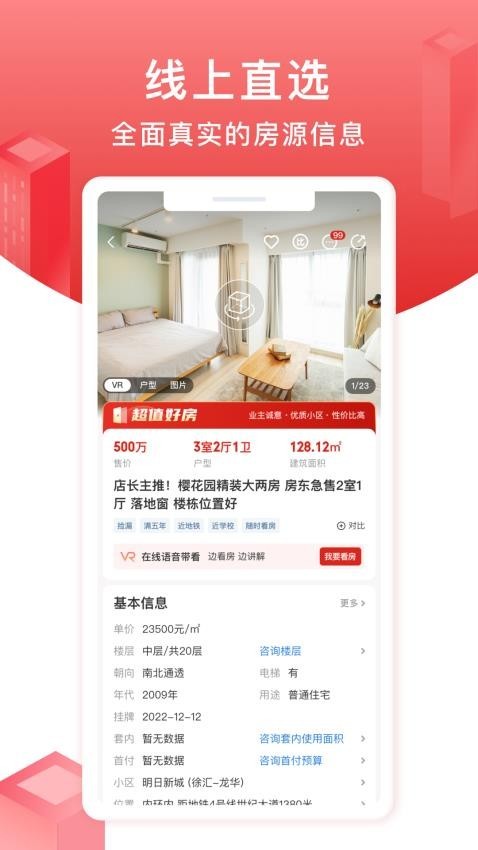 3、在线看房:软件支持VR全景看房,用户可随时在线看房,全面了解房源真实信息。