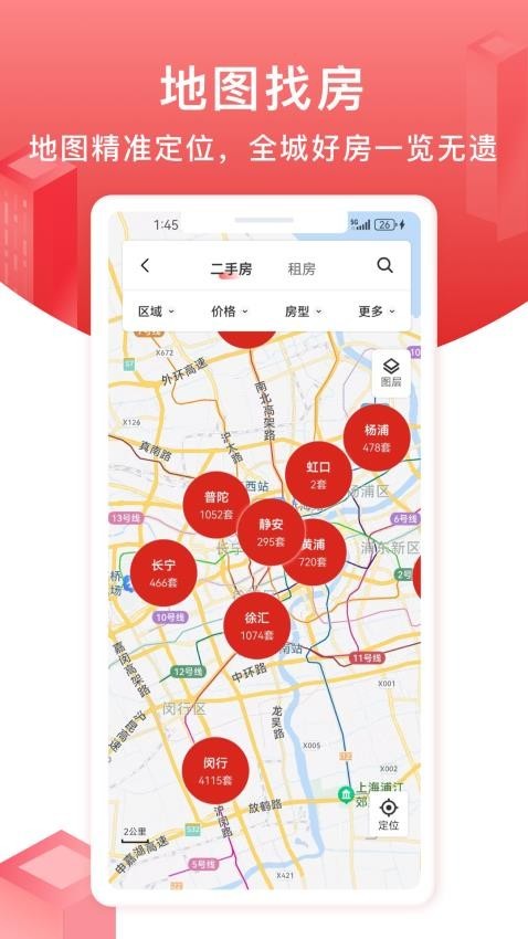 2、地图找房:具有地图找房功能,可以进行精准的地图定位,为用户查找需要的房源。