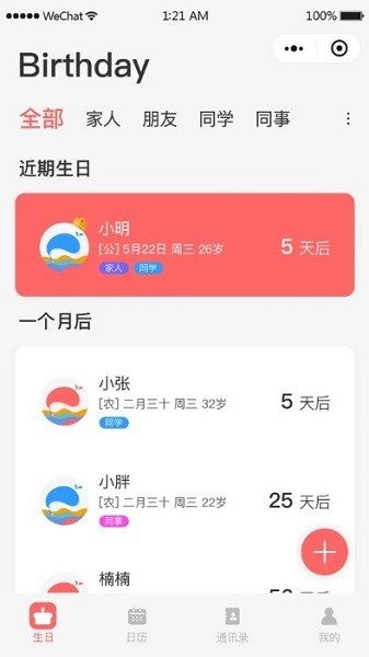 2、邀请共享:一键分享邀请亲友添加,同组亲友可互相查看生日信息,信息互通。