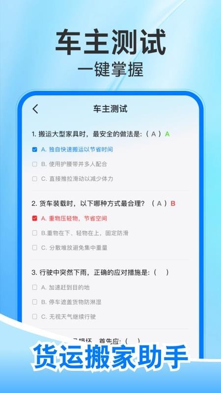 2、车主测试:查找软件中提供的测试资源,以便司机在线解答题目对职业能力进行检测。