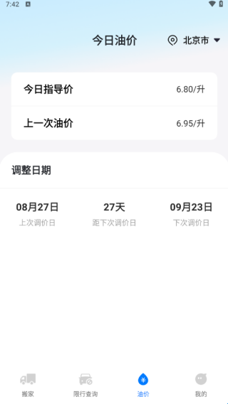 2、来到软件的油价页面,可查询所在位置的指导油价和油价波动日期。