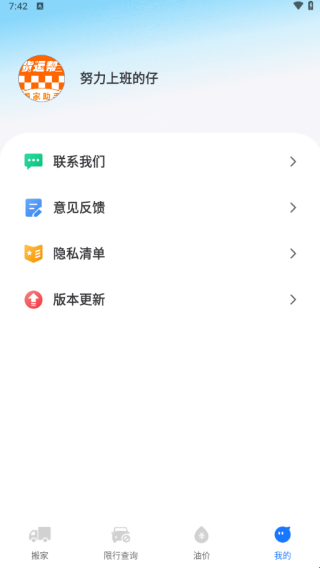 4、来到软件我的页面可使用联系我们、意见反馈、隐私清单、版本更新的功能。