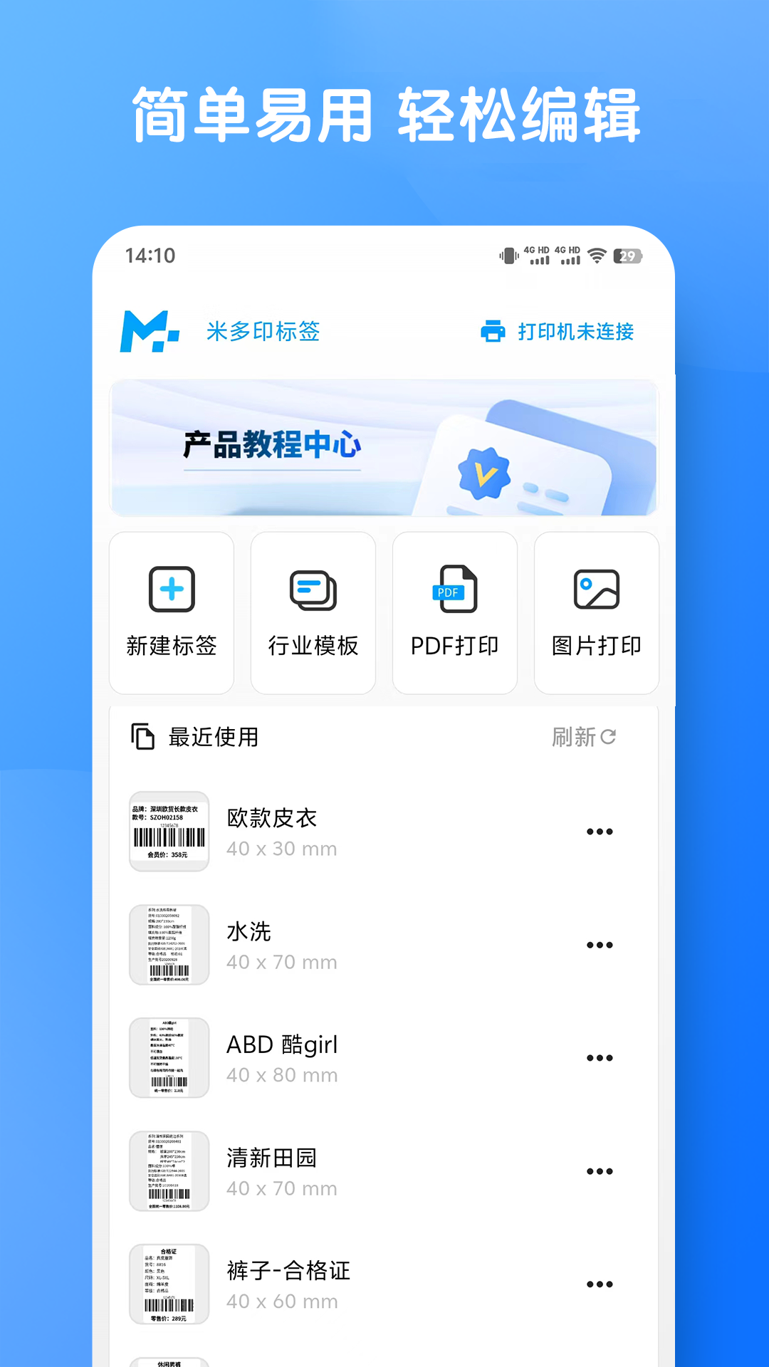 6、快速打印:助力用户快速的打印标签,能够享受自己稳定的标签打印体验。