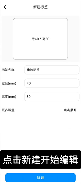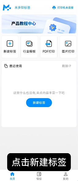 1、打开米多印标签app,进入后点击新建标签。