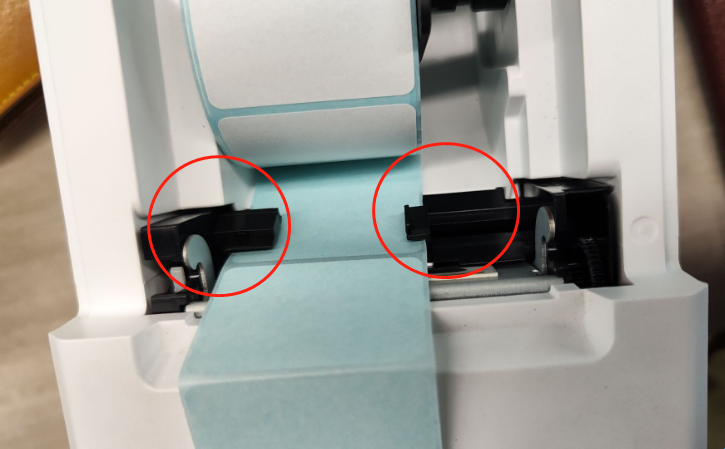 ③滴滴响3声,装纸错误,请把标签纸靠最左边安装,并从卡纸器中穿过来,可以推动右侧卡纸器到合适的位置即可,见下图。