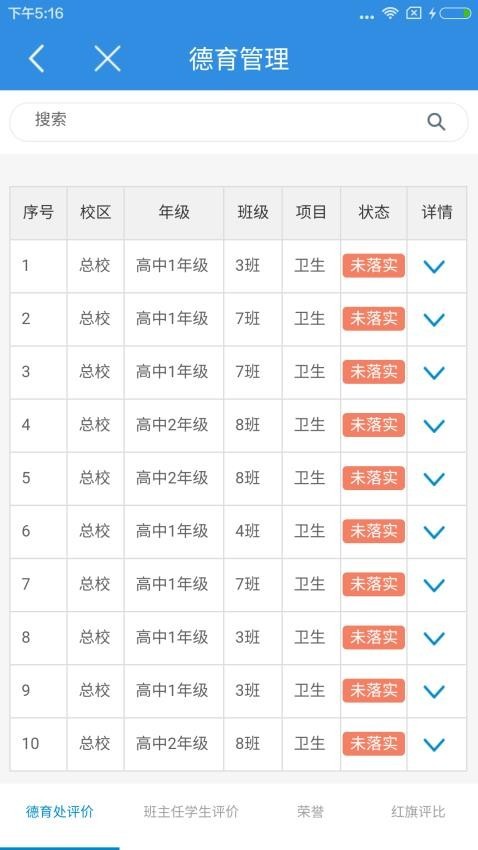3、德育管理:便捷的德育管理模式,并能通过搜索的方式快速查询项目,方便找到并立即落实。