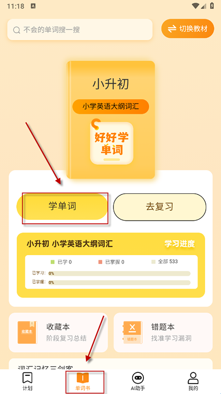 6、背诵单词:在平台里,用户可以快速的背诵单词,帮助你更好的解决学习的内容。