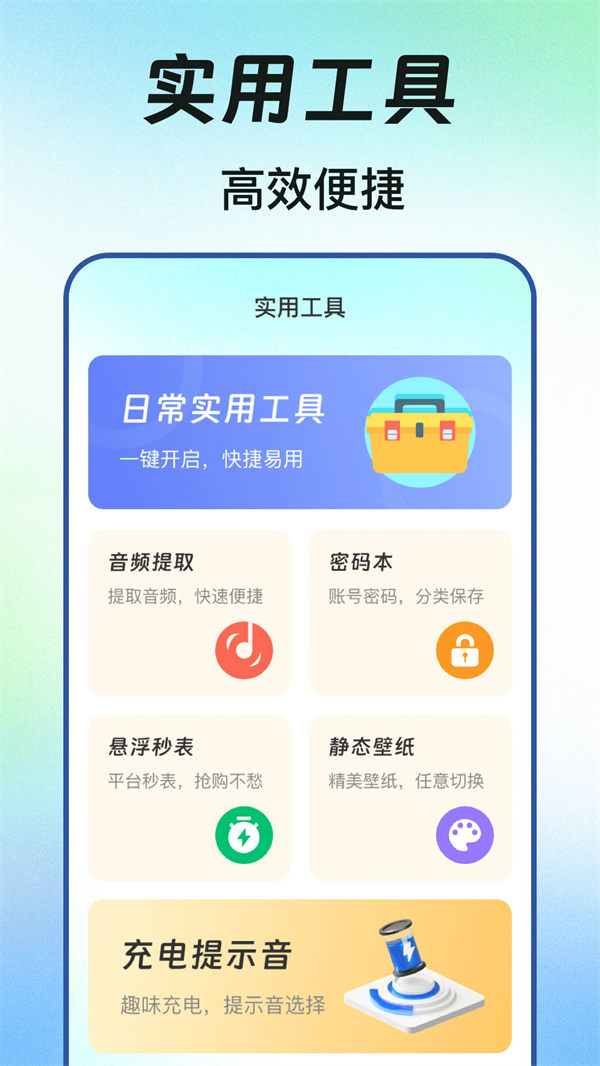3、内置多样化工具,覆盖音频、壁纸、提示音等场景,丰富使用体验。