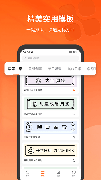 3、模板分类:将不同场景使用的标签模板分类推荐,用户可按照标签场景类型来选择所需标签使用。