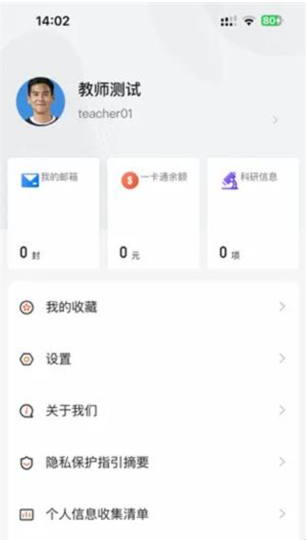 2、打开进入软件,点击我的界面,然后再点击上方教师测试。
