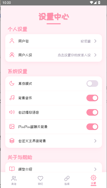 3、互动场景优化功能:内置黑夜模式、背景音乐等设置,用户可自定义聊天环境,提升互动体验;支持自动播放语音,让角色对话更具真实感;设有回忆中心,记录与角色的聊天历史,方便用户回顾互动内容,深化情感连接。