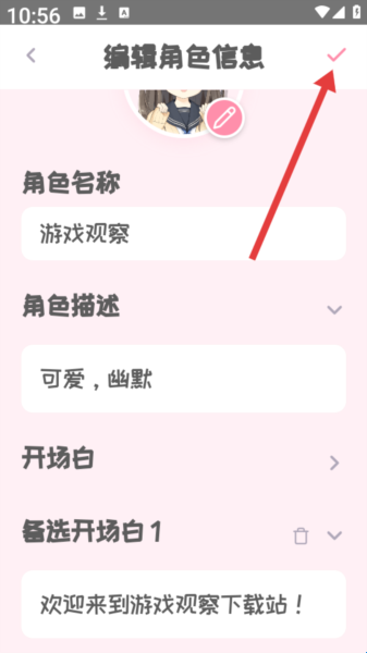 4、然后自定义输入角色名称,角色描述,开场白等等一些内容,点击右上角的保存按钮。