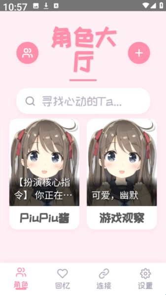 2、角色管理与定制功能:支持角色选择、编辑、分享和删除,用户可在角色大厅中寻找心动角色;提供角色卡导入与创建功能,可自定义角色名称、描述、开场白及对话示例,生成独一无二的专属虚拟角色,满足个性化创作需求。